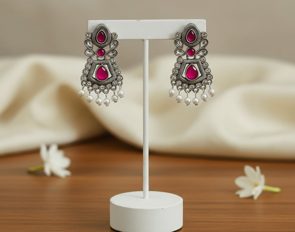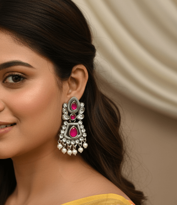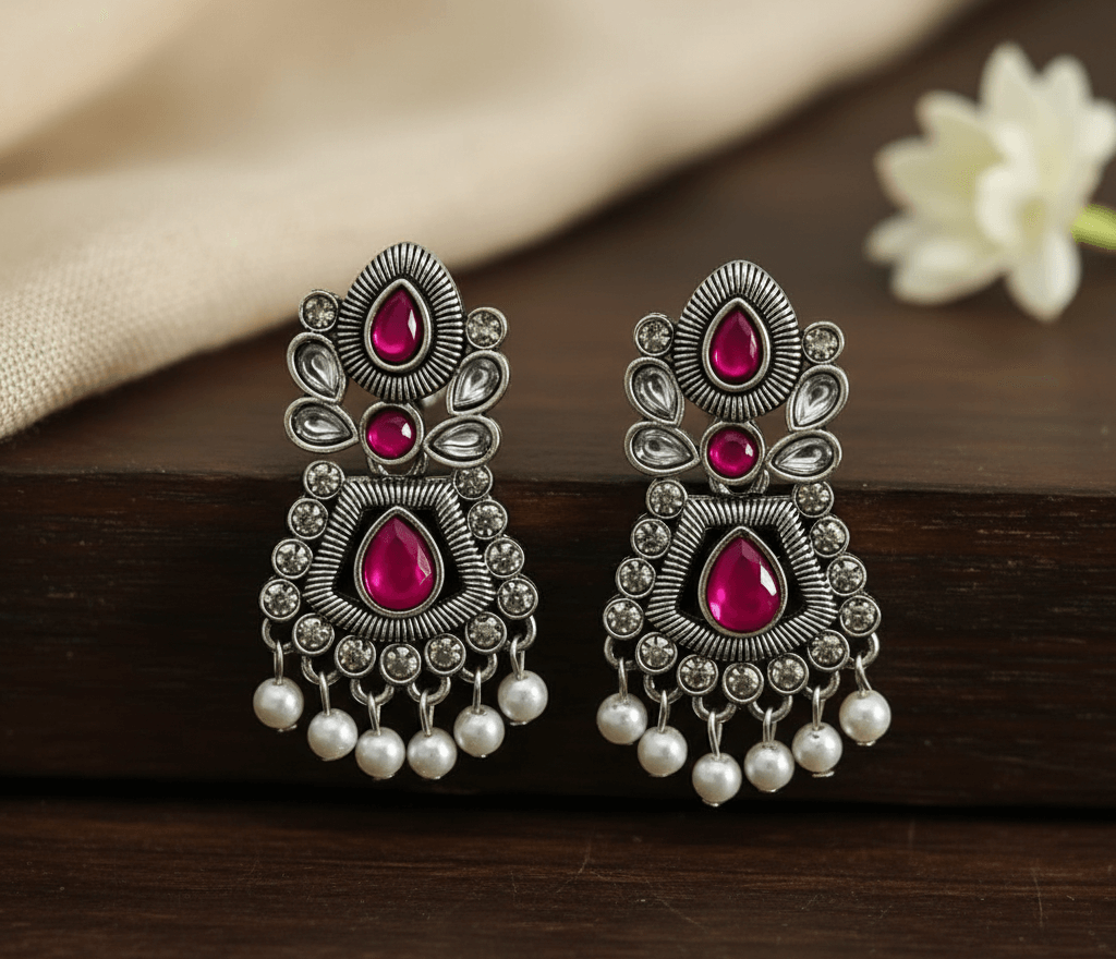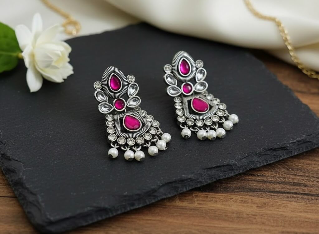 Tradional Kundan Oxidized Silver Plated Earrings for Women Jhumka Style